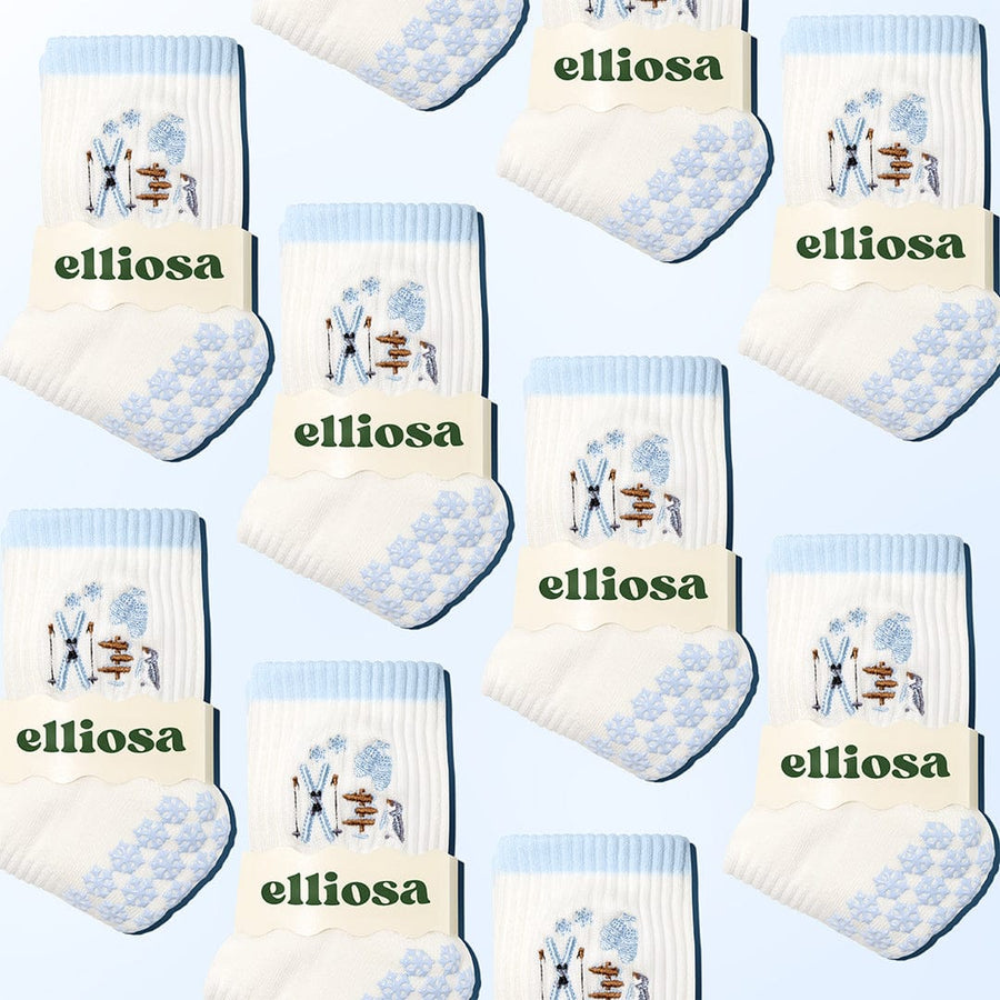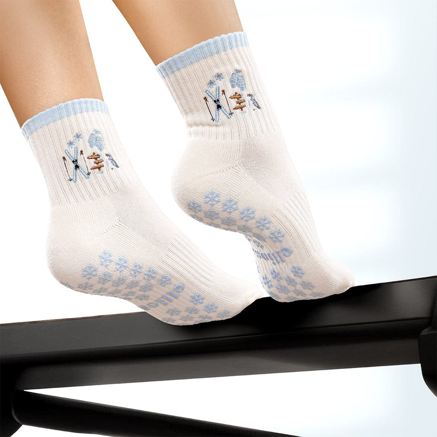 The Elliosa Après Ski Grip Socks capture the cozy spirit of après-ski with a soft blue hue inspired by fresh mountain snow. Buttery soft, breathable, and designed for performance, these Pilates grip socks keep your feet comfortable and fresh throughout your studio sessions.