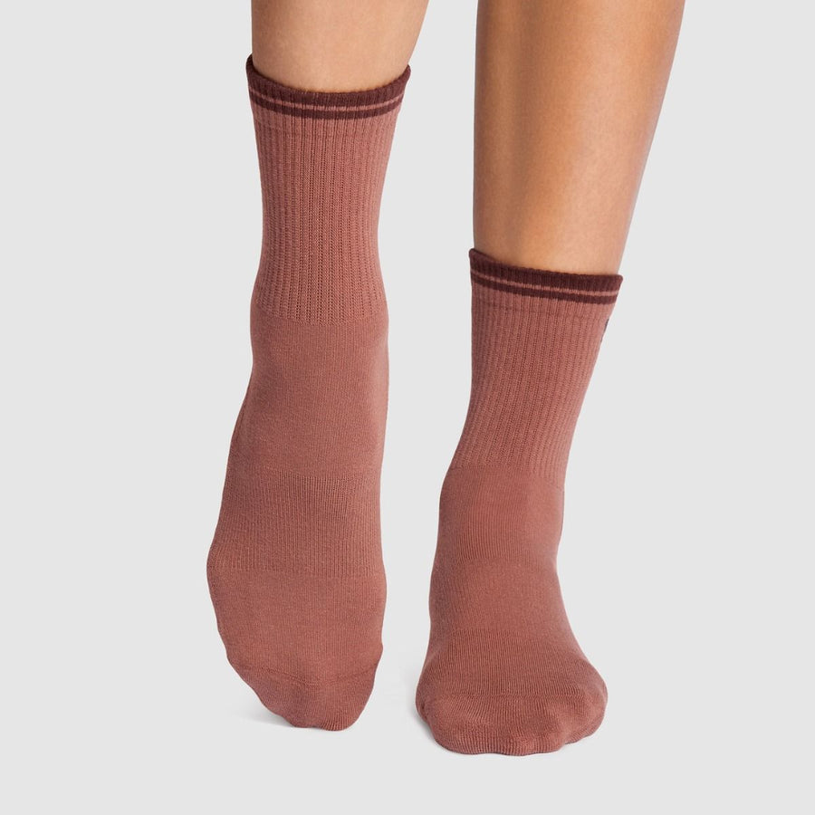 The Aria Grip Sock sits just above the ankle—lower than a classic crew but perfectly balanced for a sleek, feminine fit. Designed for both style and performance, it adds a touch of sporty elegance to your practice. With a secure low-rise silhouette and Tavi’s signature grip pattern, Aria Grip Sock keeps you steady and confident through every movement in barre, Pilates, and yoga.