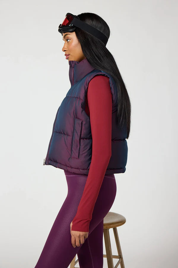 Meet your new favorite layer for crisp days and after Pilates sessions. The Aurora Vest combines wind and water resistance with a smooth, lightweight feel that keeps you warm without bulk. Quilted texture elevates the look, while practical welt pockets hold your phone and keys when you’re heading from the mountain to the mat. Throw it over anything and you’re ready for cozy, active winter days.