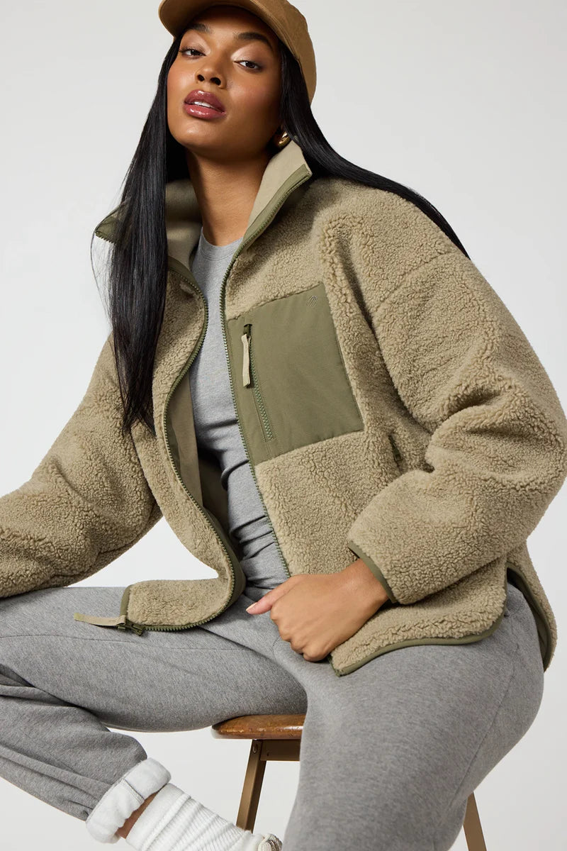 Stay cozy in the Berber Colour Block Jacket, your new fall fave! Made from ultra-soft fleece with playful contrast trims and roomy pockets, it’s the perfect layer to slip on after class or for a cozy stroll. Effortlessly chic, endlessly comfortable.