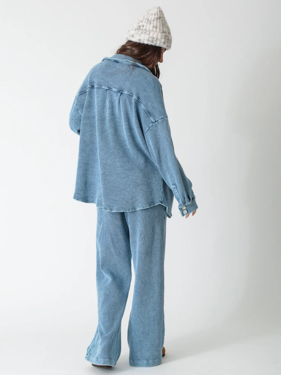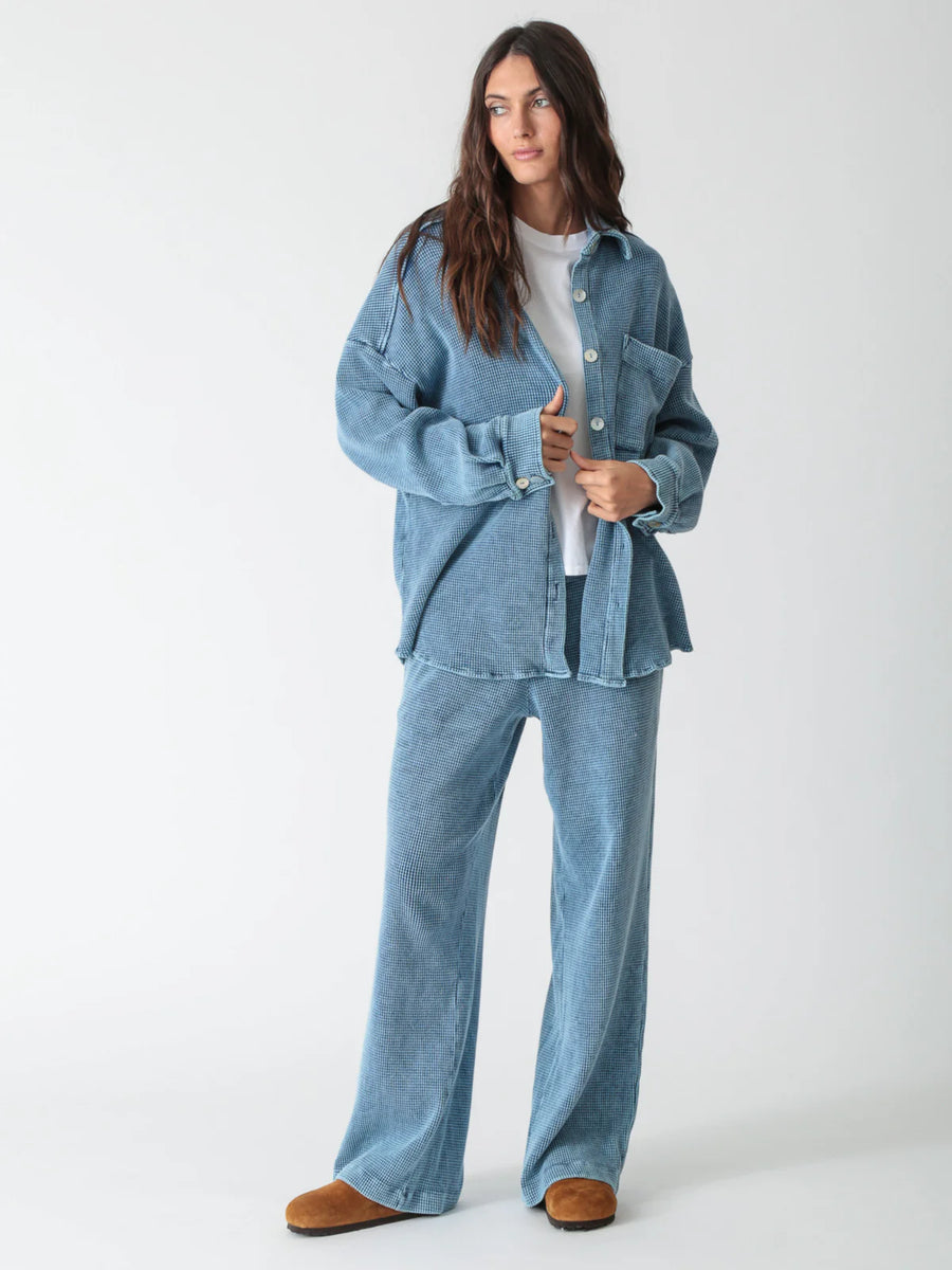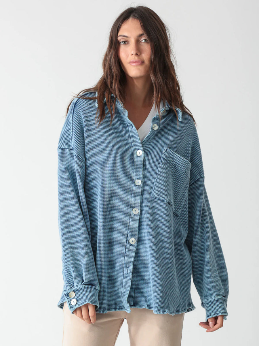 Comfy, edgy, and fun, the Boyfriend Shirt is the perfect transitional button-down. Made from 100% cotton thermal and hand-dyed in Los Angeles, it’s soft, breathable, and easy to wear. Pair it with leggings, jeans, or your favorite casual bottoms for an effortless everyday look that’s stylish and comfortable.