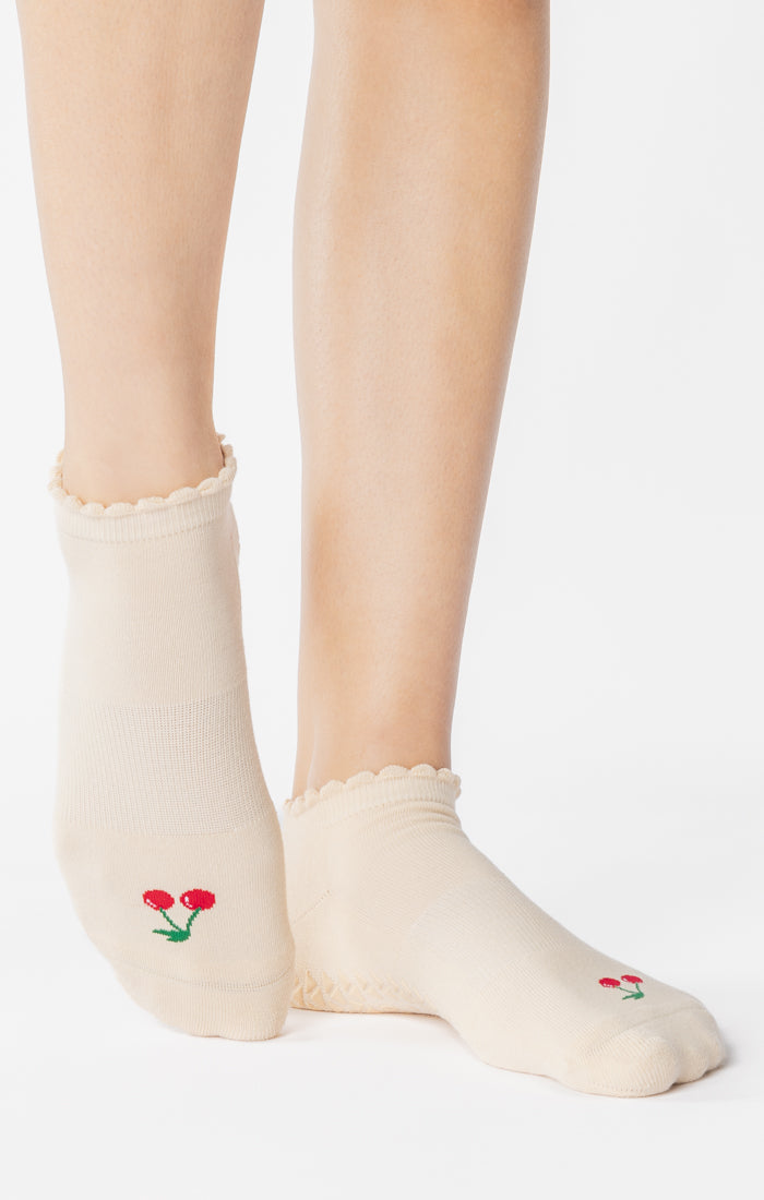 Complete your look with Pointe Studio Cherry Full Foot Grip Socks, blending a sturdy design with a fun ruffle cuff and a sweet cherry motif. Designed for both style and stability, these socks offer secure arch support, breathable cotton, and an ultra-sticky grip, keeping you balanced, confident, and ready for every move.