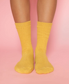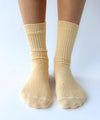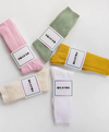Okayok dyed cotton socks are the fan favourites! You'll find these Made in Canada crew socks super comfortable, soft and high quality, with a mid-weight that's breathable and durable. Wear them cosy around the house, with jeans, or vintage style crew cut over your leggings.