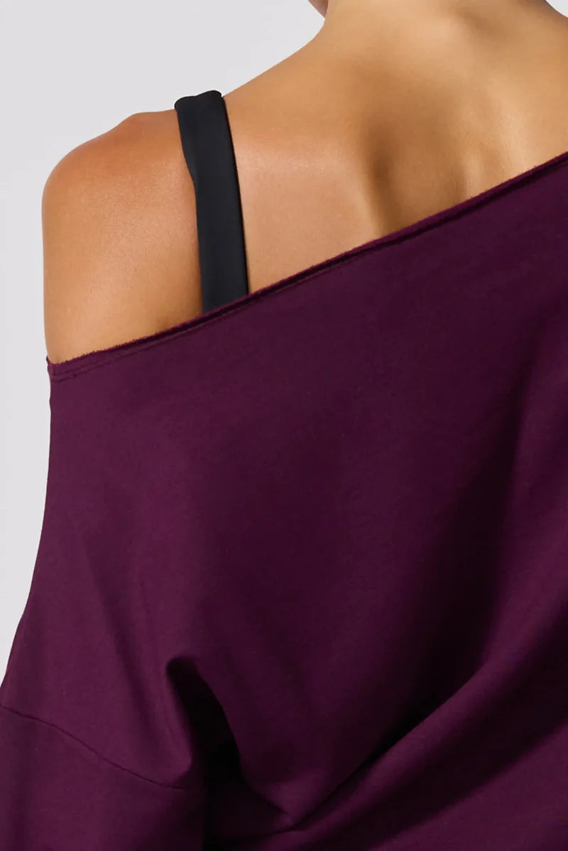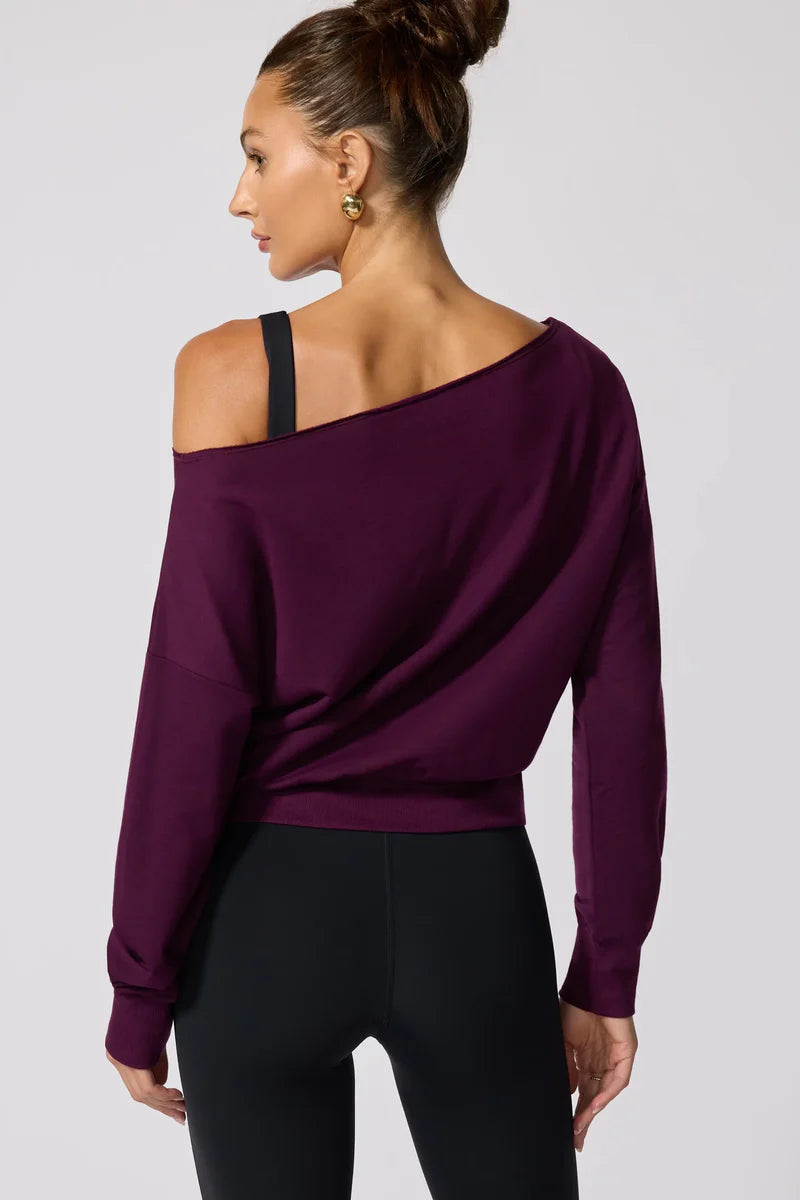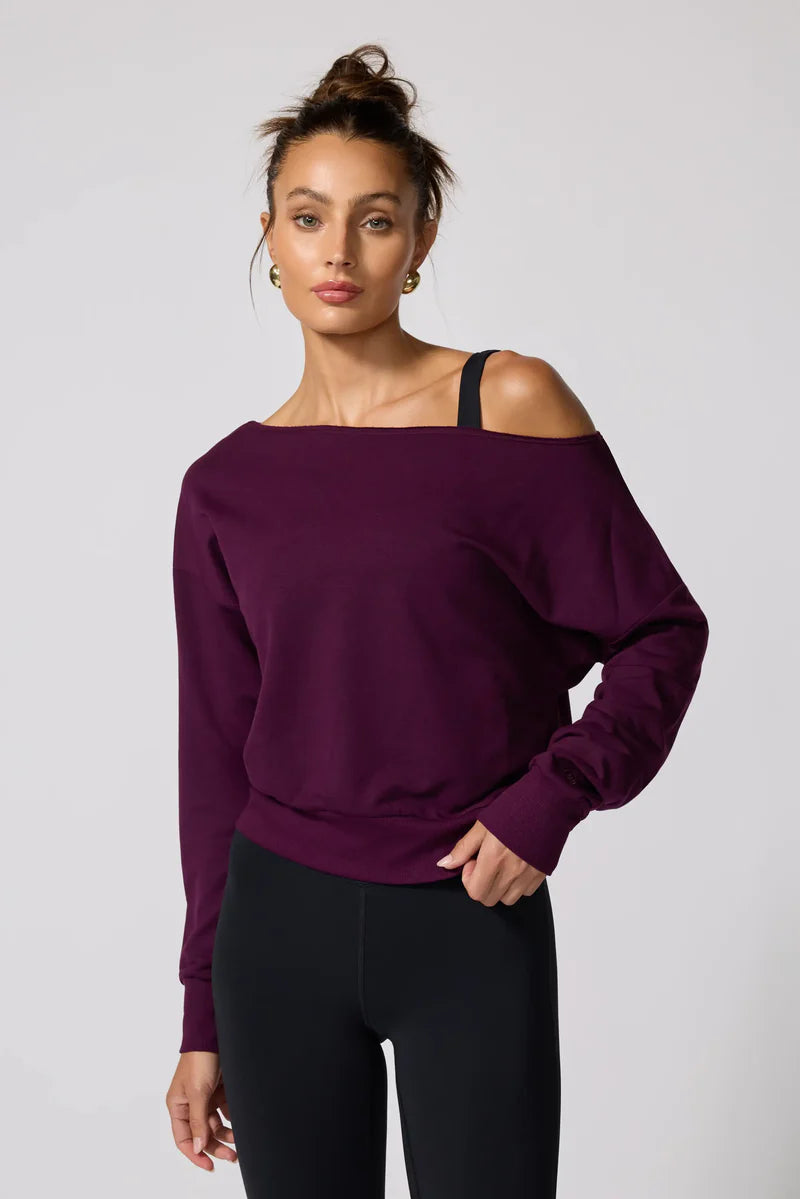 The Cozy Fleece Flashdance Sweatshirt is your new go-to layer—soft, stretchy, and consciously made. With a raw edge neckline and ribbed cuffs, it's perfect for warming up at the studio or unwinding in flow between sessions.