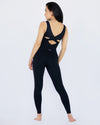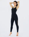 Technical scoop neck jumpsuit created in Michi's signature buttery soft, 8-way stretch fabric with crossed back detailing that adds support and mesh inserts that sculpt your curves and enhance breathability. Wear it to the gym, Pilates, or Barre. Or pair it with a hoodie, jean jacket, and Doc's for a fab street look.