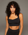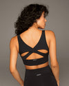High performance longline bra with eye-catching, supportive crossed back straps and a 2.5” soft yet secure fabric covered elastic chest band, for a 3-D flattering fit and maximum comfort while you move.