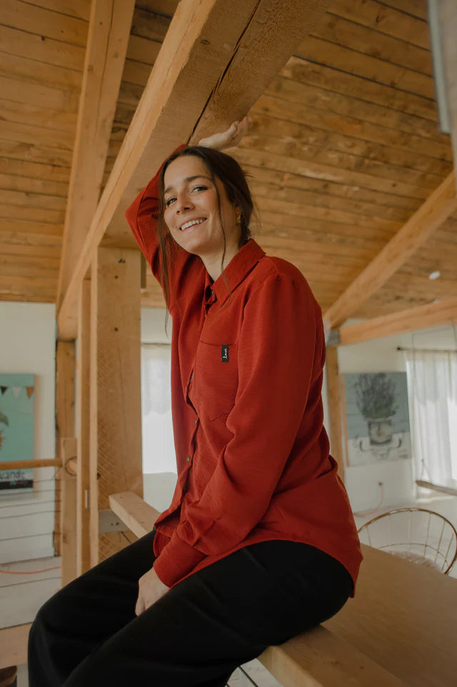 This updated version of Louve Design Jacky Flow Shirt brings a touch of femininity and delicacy to a classic favorite. Made from 100% lightweight polyester, it’s wrinkle-resistant, easy to care for, and designed for effortless, everyday styling. The straight fit, mid-thigh length, and curved hem create a flattering, vintage-inspired silhouette that’s as versatile as it is chic.