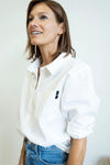 Long sleeve vintage shirt with round hem. Made of a light poplin cotton fabric (97% Cotton, 3% Polyester). For the beach, for work, for a happy hour or for traveling. It's the only piece you need.