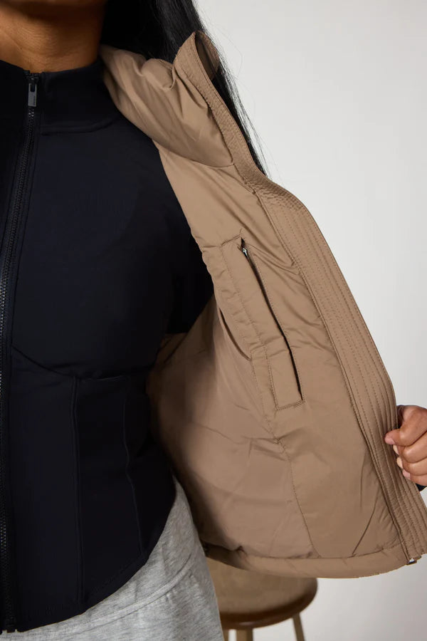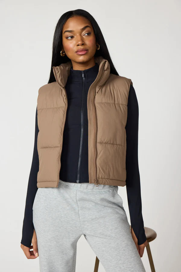 Light and cozy, the Matte cropped vest is the perfect layer to throw on after a Pilates class—ideal for walking home, grabbing a latte, or running errands. With secure pockets for your must-haves, you stay warm, free, and stylish on the go.