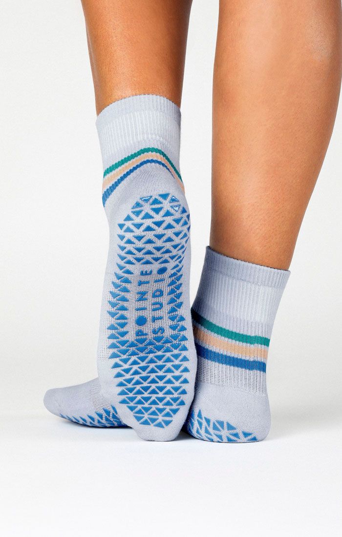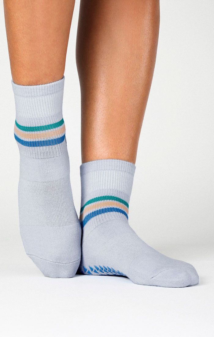 A longtime favorite, the Phoebe Ankle Grip Sock features a sleek design with three colorful stripes below the cuff. With no-slip grips and compression arch support, these socks offer comfort and stability for Pilates, barre, yoga, and daily movement—perfectly balancing style and function.