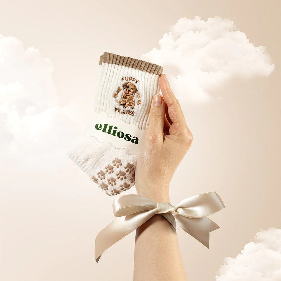 Bring a little puppy energy to your Pilates practice with Elliosa Puppy Pilates Grip Socks. Cute, chic, and functional, they help you stay balanced and stable through every hold, stretch, and flow—whether on the reformer, at the barre, or on the mat.