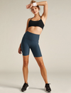 Buttery soft, body-flattering biker shorts you can wear for movement, cute summer outfits, and beyond. Made from Beyond Yoga bestselling performance fabric, featuring their insanely flattering high waistband and mid-thigh length at 7" inseam. Add this piece to your fashion cycle, it's essential on all levels: comfort, style, and sporty effortlessness.