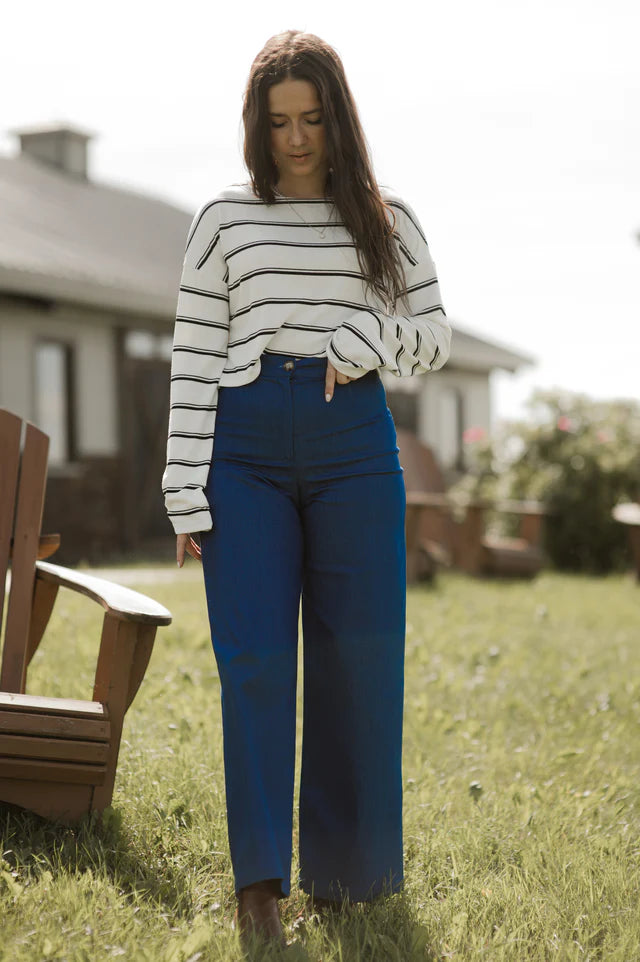 The perfect striped top—simple yet refined. This lightweight knit in crisp white with fine black stripes is a versatile wardrobe staple for year-round wear. With a flattering length that pairs effortlessly with your favorite bottoms, it strikes the ideal balance—not too short, not too long.