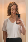 The Everyday V-neck Tee blends soft, breathable modal with clean style and function. Lightweight and comfortable, it’s perfect for movement-filled days. Its sleek fit and versatile design make it easy to pair with leggings or denim—ideal from studio sessions to casual outings.
