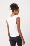 High-cut muscle tank with a twist in front. Soft and unlined. Made of 100% Cotton Jersey.