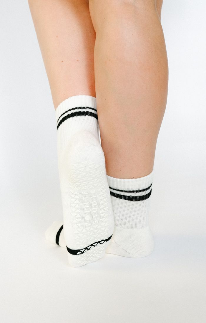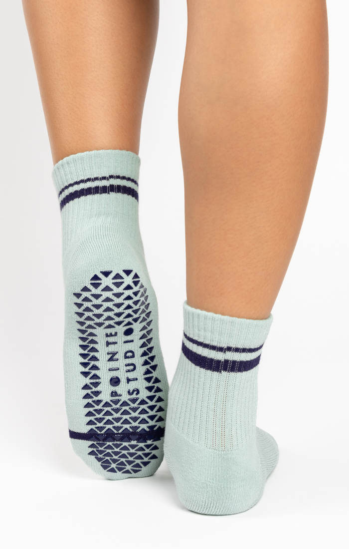 Stay active in Pointe Studio Varsity Grip Ankle Socks, a sporty essential you’ll reach for again and again. Designed for movement, whether you're crushing a Pilates session or tackling daily errands, these ankle socks blend athletic style with everyday comfort. Featuring no-slip grips, compression arch support, and breathable cotton, they keep you steady, supported, and ready for anything.